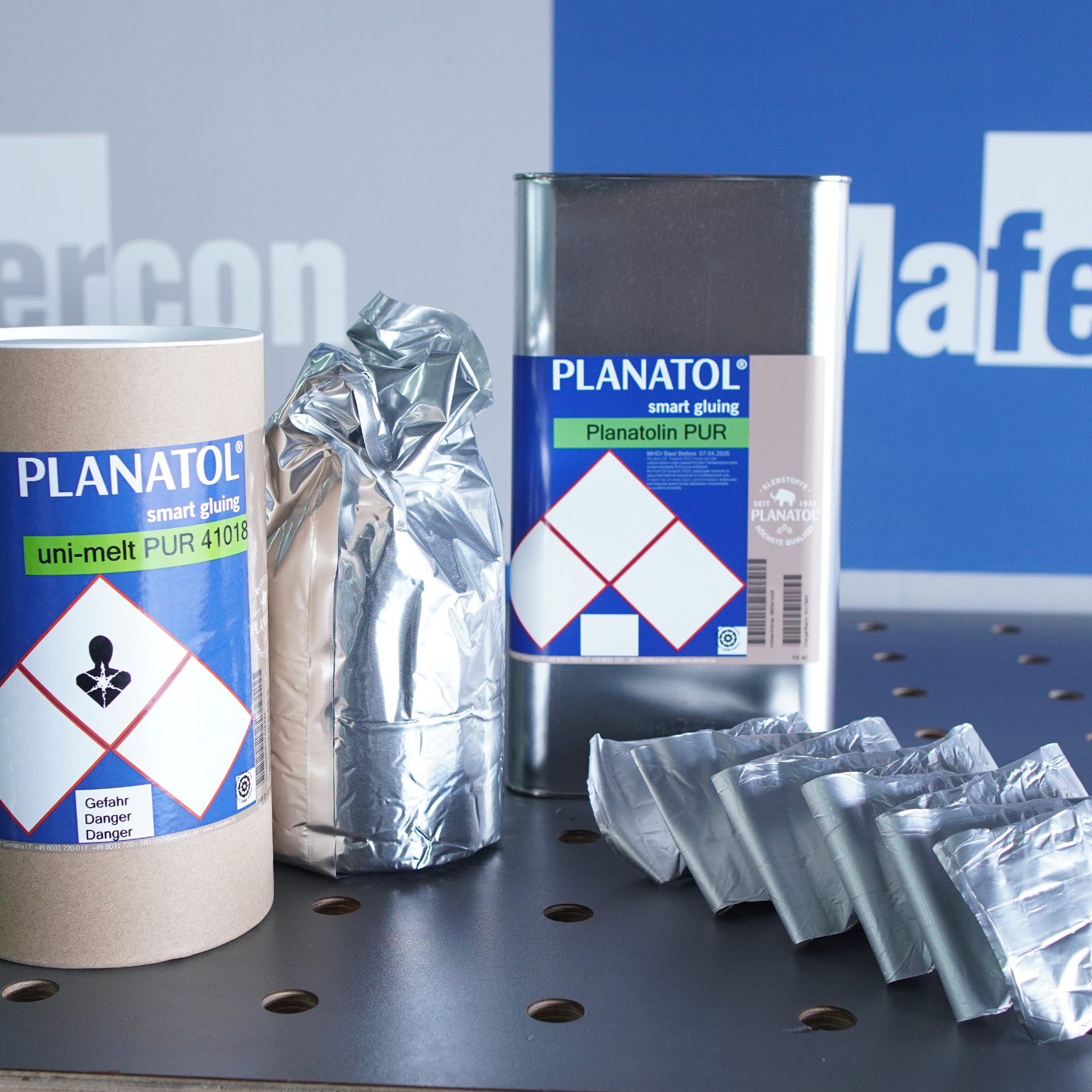 A cola PUR MAF 580 em sachê 100g da Mafercon, é a única cola PUR do mercado que pode ser utilizada em coladeiras de coleiro convencional, isso graças ao processo de reação prolongado que permite a cola durar até 3 dias no coleiro após aberto. Outro facilitador é seu pequeno volume de 100g permitindo ao marceneiro administrar de forma simples a sua aplicação.